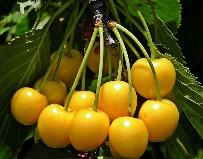 Саженцы черешни Золотая порадуют невероятным размером ягод и их ярко-желтой привлекательной окраской. Благодаря медово-сладкому вкусу, ягоды нередко используются в качестве полезного освежающего десерта. Крупномеры черешни начинают приносить плоды на 3-4 год посадки. Ягоды этого сорта по праву считаются одними из наиболее вкусных. Молодые растения быстро развиваются, превращаясь в высокие деревья. Саженцы черешни Золотая хорошо переносят зимнюю погоду и обладают устойчивостью к грибковым заболеваниям. Этот сорт не самоплоден, поэтому потребуются представители другого сорта для опыления.