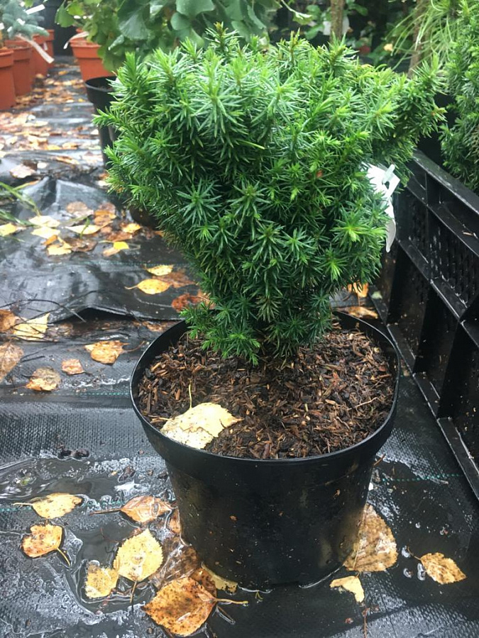 Саженцы Криптомерии японской Фанни (Cryptomeria japonica) – очень необычное, декоративное растение, крона которого крайне густая, конической формы. В каждый сезон окрас кроны имеет свой оттенок: зимой – кукурузно-бурый или фиолетово-пурпурный, летом – насыщенно-зеленый. Хвоя игольчатая, напоминает хвою можжевельника или туи. Шишки представлены в виде небольших чешуйчатых шариков сероватого оттенка. Криптомерия японской Фанни благоприятно произрастает в местах с высокой влажностью почвы и воздуха. Высаживается в открытом грунте, который стоит подвергнуть дренированию. Морозостойкость высокая, однако в период самых суровых заморозков растению необходимо укрытие.