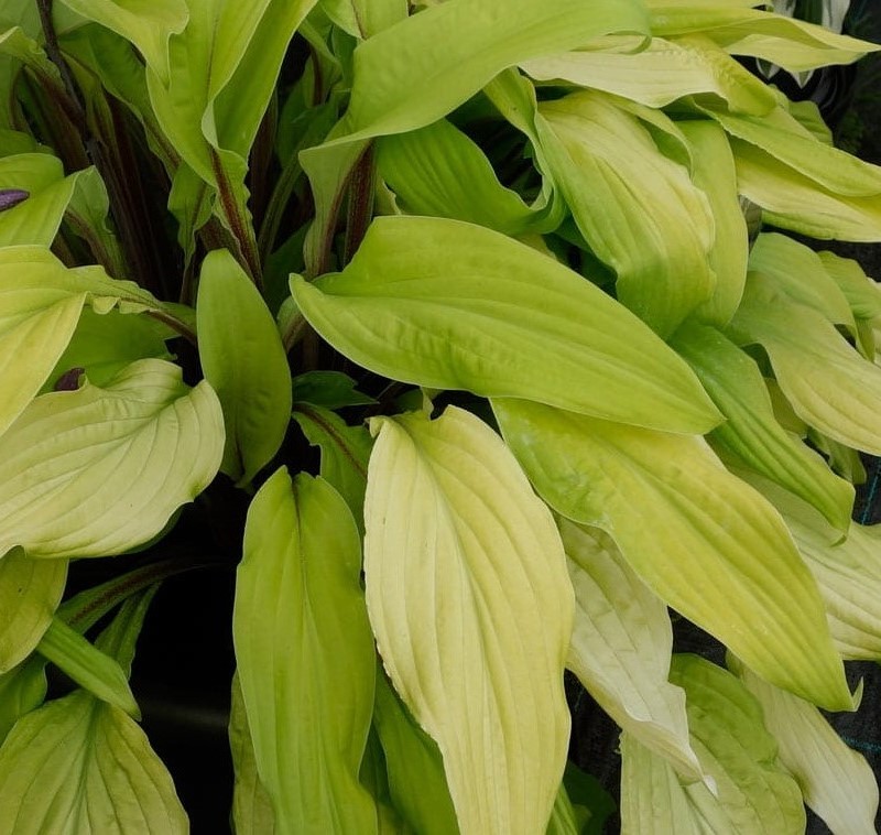 Саженцы хосты гибридной Липстик Кисс (Lipstick Kiss) выбирают ценители необычных сортов. Растение отличается оригинальным окрасом листвы — молодые побеги пастельно-лимонные с восковым напылением, позже налет смывается, приобретая насыщенно-желтый цвет. Форма не менее привлекательная — удлиненная, ланцетовидная, с гофрированным краем. На фоне красных стеблей получается необычный ансамбль. Из-за такой окраски, растение выглядит пестро и ярко во все поры года, а в периоды цветения его дополняют маленькие фиолетовые цветы. Посадите хосту отдельно или с другими культурами, она будет смотреться чудесно, независимо от окружения. Цветение в июнь-августе. Место тенистое. Почва влажная дренированная. Зона 3 (до -40ºС).