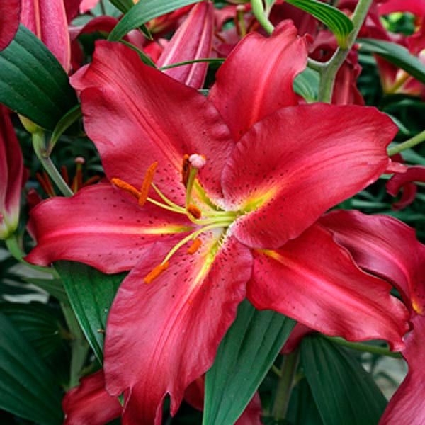 Луковицы лилии Gran Tourismo высаживают осенью или весной, предпочтительно в плодородную, проницаемую, богатую перегноем, слегка кислую почву. Лучше всего выглядит данное растение в группах по 3-5 штук. Но и в смешанных цветниках культура очень эффектна. Зацветает растение через 100-110 дней после посадки. Простые цветки очень крупные, диаметром до 20-25 см. Их цвет насыщенный красно-розовый с отличительными отметинами желто-зеленого тона в центре и редким крапом. Края лилии Gran Tourismo слегка волнистые.
