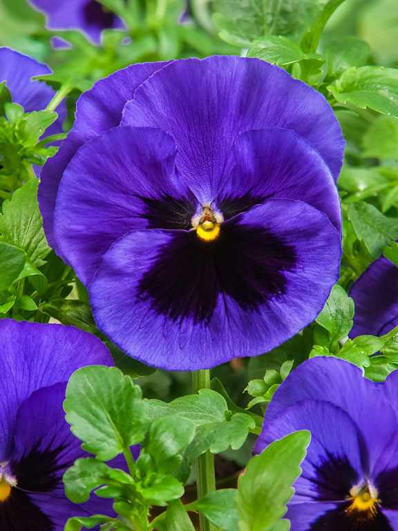 Виола крупноцветковая инспайер плюс блю блотч - это великолепное растение с изысканными синими цветками, которые радуют глаз своей красотой. Этот сорт отличается высокой морозостойкостью и прекрасно подходит для групповых посадок. Высота растения достигает 15-20 см, а размер цветка составляет 7-8 см, что делает его заметным акцентом в саду или на клумбе.